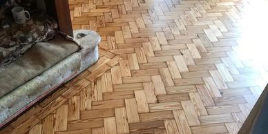 As the name suggests, renovating a floor means retaining all, or most, of the existing wood blocks in the floor and restoring them back to looking smooth, even and well-finished. The result is a floor that looks almost new, by restoring the colour, hues, finish and “character” of the original floor.
